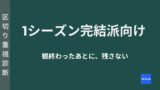 | 作品名 | 時間帯 | 時間効率 | 負担 | ジャンル | 外れ率 | 認知負荷 | 感情強度 |